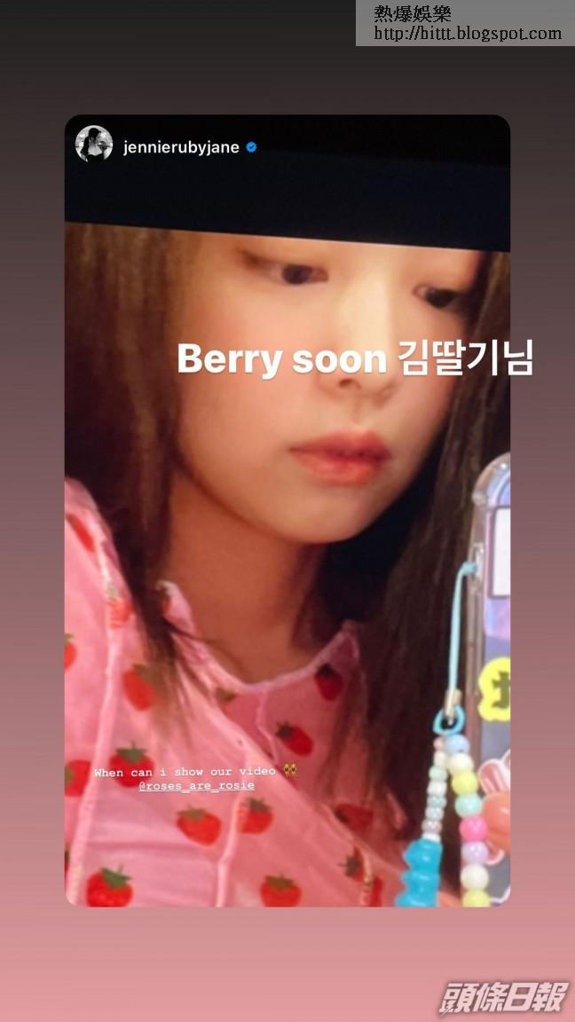 之後Jennie再公開問Rosé「When can I show our video? (甚麼時候才可以上載我們的影片)」,而Rosé就玩食字回答「Berry Soon 金士多啤梨大人」,唔知早前撈過界做埋YouTuber嘅Jennie係咪已同Rosé一齊拍片呢?