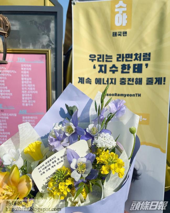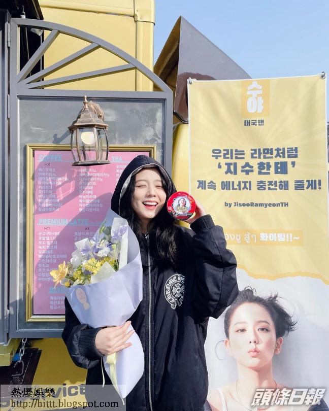韓國女團BLACKPINK成員Jisoo真係好多人錫,點解咁講?事關忙於拍攝《雪滴花》嘅Jisoo昨日又有餐車收,佢仲Post上IG晒幸福。今次Jisoo獲一班泰國Fans送上即食麵餐車,更大玩Warm爆韓文食字留言:「我們就像即食麵一樣,『Jisoo韓泰』(跟「給Jisoo」讀音相同)持續充電!」完美將兩個國家拼埋,創意滿分!另外泰國Fans亦有送花畀Jisoo,○氹得女神好開心,仲笑到見牙唔見眼!