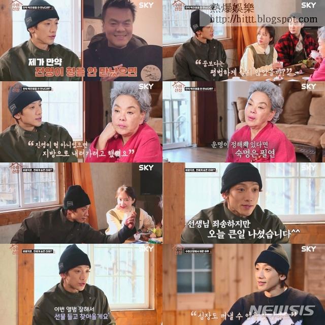 Rain在恩師朴震榮培育下,20歲時成功出道,他表示:「如果沒有遇上震榮哥,我應該會是一個認真工作的勞動者,活得很平凡。」大前輩金守美亦安慰說道:「命中注定遇見的人一定會相遇,現在你也成為為人實現夢想的人啊。」而Rain攜同他旗下事務所推出的新男團Ciipher一同亮相節目,他就下達戀愛禁令,警告組合成員出道後5年都不能拍拖。