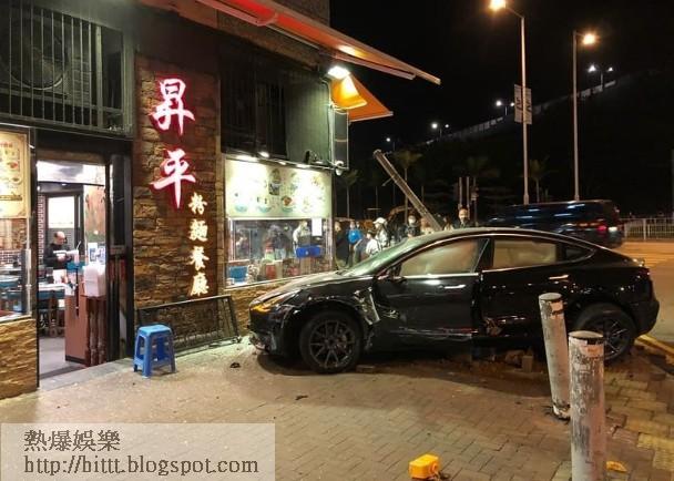 Tesla撞柱掃欄後剷上行人路,險撞入餐廳。屯門發生交通意外,昨晚(23日)接近10時,一名外籍(44歲)男子駕駛Tesla電動車,沿龍門路駛至近龍門 ...