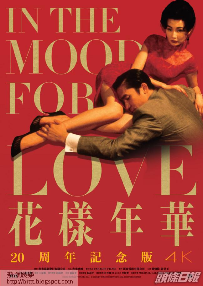 由王家衛執導,張曼玉及梁朝偉主演的《花樣年華》是不少影迷心目中的經典佳作,為慶祝電影上映20周年,王家衛完成了《花樣年華》4K數碼修復版的工程,更安排電影於本月29日起在全線6間英皇戲院獨家上映,包括中環娛樂行、屯門新都商場、馬鞍山新港城中心、尖沙咀iSQUARE、荃灣荃新天地及將軍澳康城。