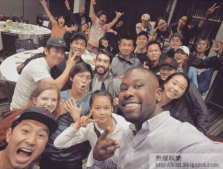 導演德斯汀丹尼爾克雷頓宣佈《尚氣》煞科,與其妻、胞妹及張夢兒(右)在片場合照留念。