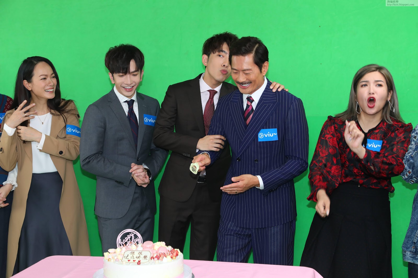 黃德斌、MIRROR成員呂爵安(Edan)、盧瀚霆(Anson Lo)及邱士縉(Stanley)等,今天於新蒲崗為港版《大叔的愛》拍攝海報,劇集將於6月底播出。劇組送上蛋糕預祝德斌下周五(30日)的58歳生日,演員們一同唱生日歌,身旁的Edan更作狀獻吻,嚇到德斌毛管戙,十分搞笑。