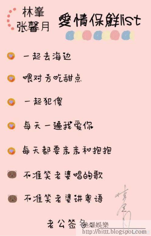 林峯與張馨月結婚一年多,夫妻間越來越愛的程度,可以從他們頻密放閃的恩愛post感受得到,早前2人首度以夫妻檔參加大陸真人騷《妻子的浪漫旅行5》。節目將於本周播出,為了宣傳節目,夫妻2人在網上分享錫錫短片,片中張馨月先跟老公林峯說:「對了,老公我要去旅行了,我給你留三樣東西。」正當林峯一臉疑惑時,張馨月二話不說便連錫老公臉頰兩啖,更露出甜美笑容。突然而來的艷福令林峯喜上眉梢,即表示「我知道第三樣是甚麼。」正當他嘟長嘴準備咀向嬌妻回禮時,卻換來被一掌推開,張馨月繼而說:「你想多了。」其實一切純綷只為宣傳而做。