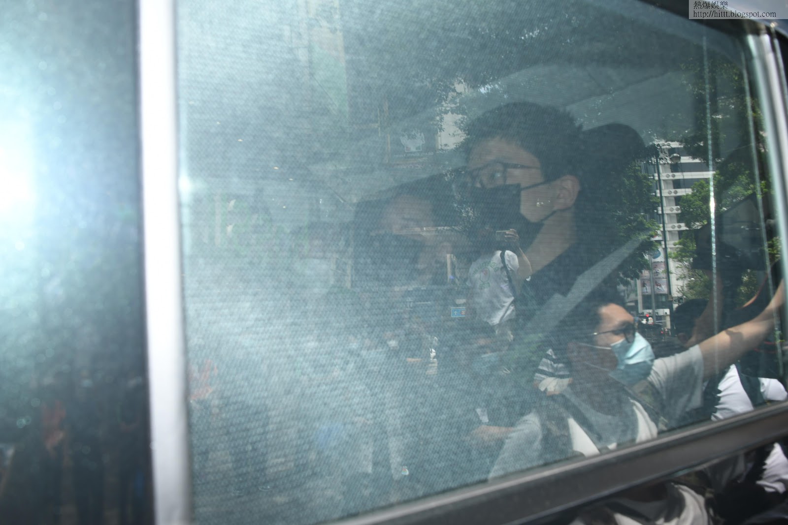 敏兒與兩個仔仔乘坐靈車到場。