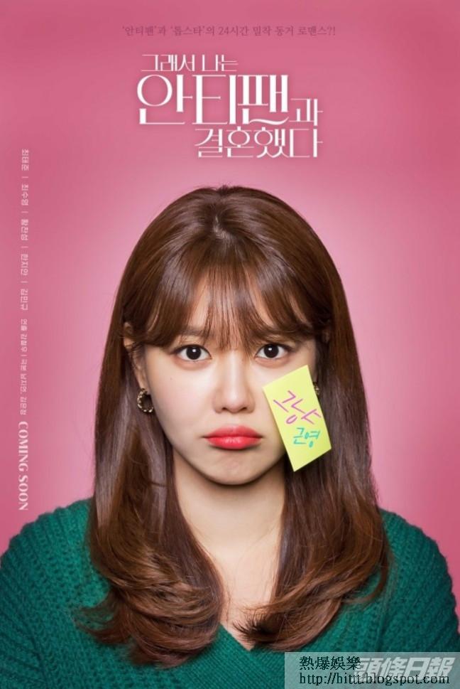 改編自同名網絡漫畫的韓劇《所以我和黑粉結婚了》(《黑粉》)早於18年已開拍,可惜拍畢後一直放入雪櫃。近日劇集終於有播出消息,更公開新劇照及5位主角的個人海報。愛情喜劇《黑粉》講述雜誌記者李璟英(秀英飾)因誤會成為大明星胡準(崔泰俊飾)的Hater,兩人從討厭到相愛的故事。