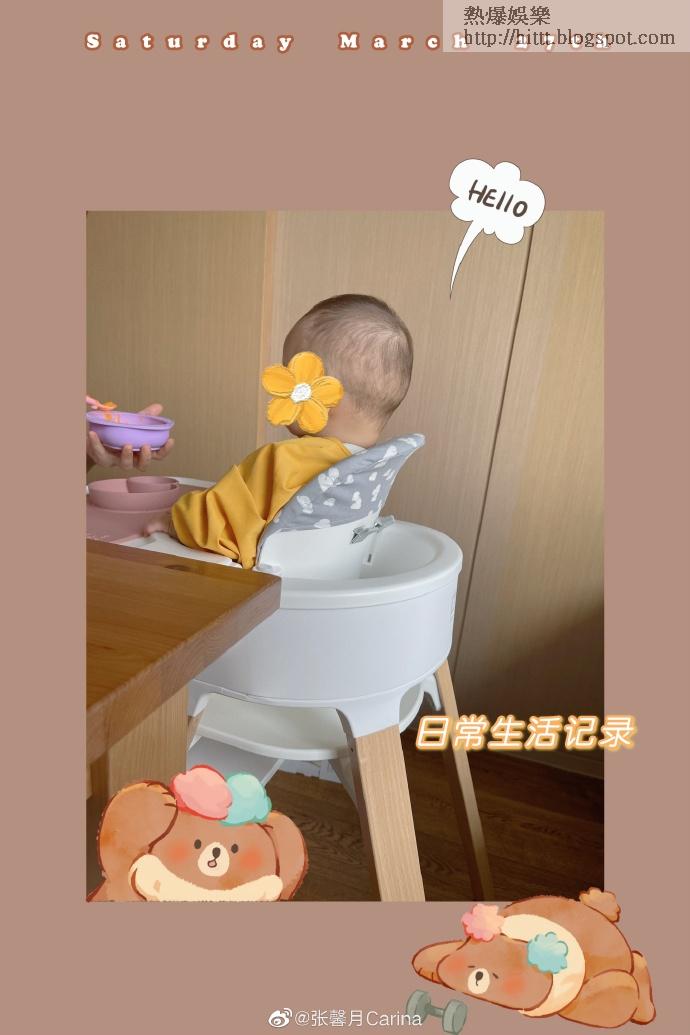 張馨月婚後被林峯錫到燶,日前大晒收到老公送花的相片,今日則晒囡囡坐在高凳等餵飯的背影後說:「乖乖吃飯,真是媽咪的天使寶寶。」