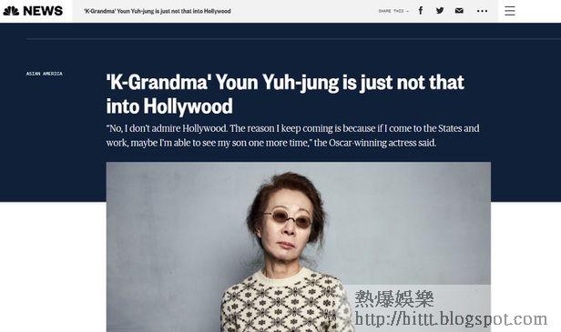韓國73歲實力派女星尹汝貞憑《農情家園》(Minari)於周一舉行的奧斯卡頒獎禮上,以大熱姿態摘下最佳女配角獎,成為首位韓國演員獲得演技獎,揚威國際。目前留在美國的尹汝貞接受NBC電視台訪問,她透露於美國經常接到工作的提議,韓國人會認為她會憧憬荷李活,但她直言她並不憧憬荷李活。