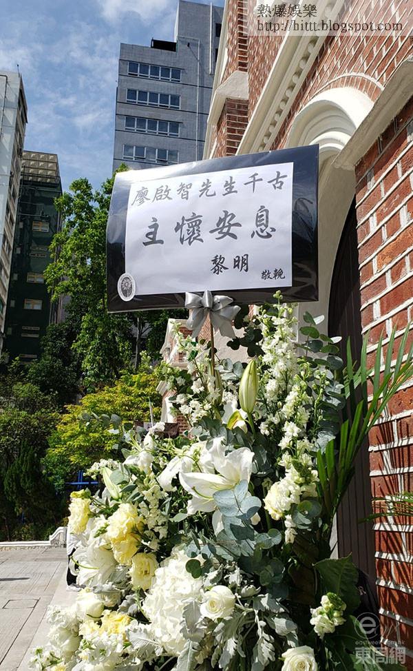 智叔安息禮今日在聖安德烈堂舉行,會場外擺放智叔穿著西裝、戴著墨鏡和帽,在萬里長城拍攝的照片。岑建勳、艾威、麥麗紅、曾偉明、 林建明、黃日華、黃芷晴、談善言、駱應鈞、岑珈其、羅蘭、方中信、莊文強、方平、杜琪峯夫婦、林嘉欣、Mirror成員Tiger(邱傲然)、鍾舒漫、郭富城、小美、白只及顏卓靈等先後到場,遺孀陳敏兒的花牌放在智叔的遺照旁邊,寫有「給我的最愛 啟智 天國永生 永遠愛你 妻敏兒」