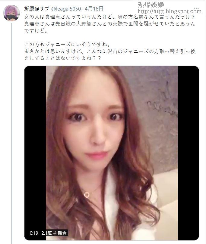 A小姐年約30歲,她上月初竟然在網上開Live談到大野智,引起嵐的fans反應頗大。話口未完,A小姐一段唱K短片再鬧出軒然大波,事關她自拍時黐住前尊尼事務所男星錦戶亮,雖然K房內還有另一男性坐在較遠距離,但身為偶像的錦戶亮毫不介意被女方攝入鏡頭,該20秒短片是由一位認識A小姐的YouTuber公開,上載時還暗指A小姐搭上錦戶亮,未知是已經換畫還是一腳踏兩船,但已令網民驚嘆她連嗒兩男星及甚懂耍手段。