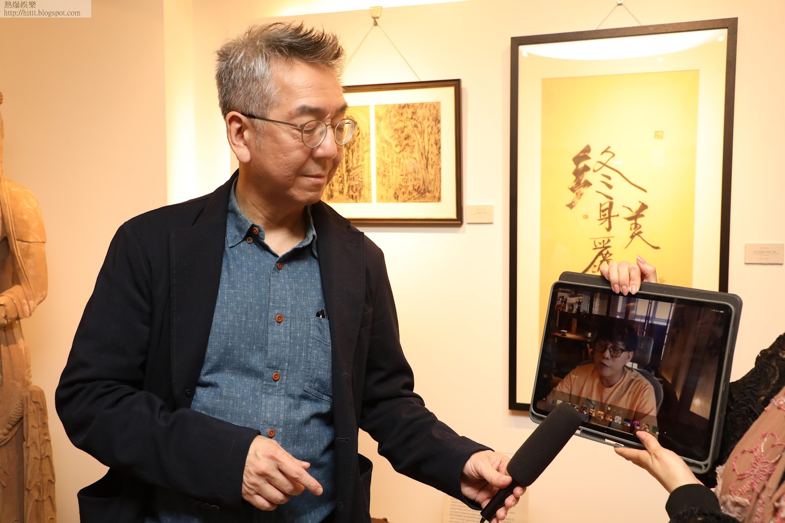 陶傑和林夕首次聯手合作,在上環舉辦「瞬間印記展覽」,展出二人畫作及書法,展覽本月24日正式開幕。陶傑今日率先到展館導覧,與身在台灣的林夕透過視像交流,兩位才子滔滔不絕暢談藝術。