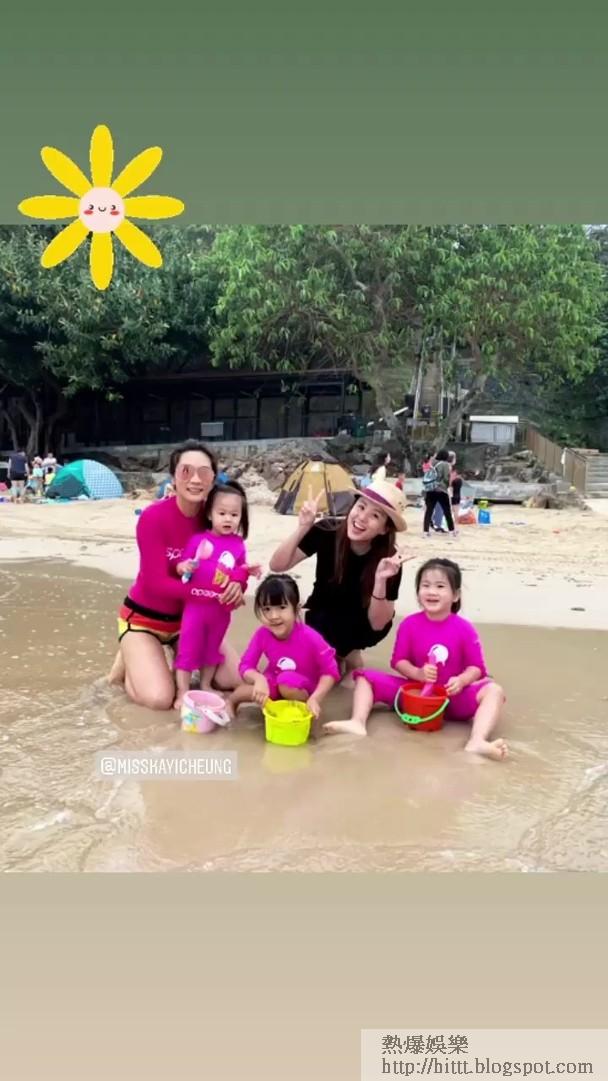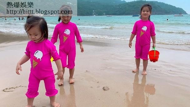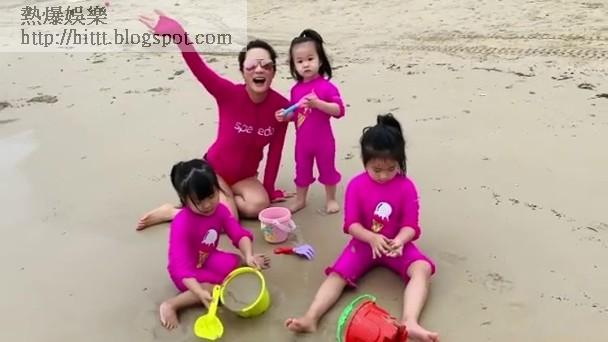 藝人張嘉兒不時帶兩個囡囡外出遊玩,近日她們3母女再次出動到沙灘,她於社交網大晒合照及多段短片,見她們清一色以桃紅色家庭泳裝上陣,非常搶眼。不過她們身旁還多了一位小妹妹,同樣着上同款泳衣,與她們打成一片似足一家人,令網友驚訝她突然多了一個女兒。