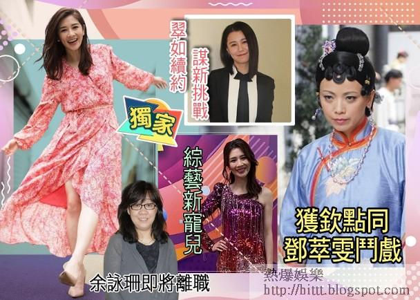 「雙飛」發展的她成了綜藝節目及劇集監製的新寵兒,之前為部署新劇的她極速收身,一副戰鬥格,與胡鴻鈞、馬貫東等拍完短劇《愛上我的衰神》後,更被派演新一輯《巾幗》系列,角色更是超筍位,與女主角鄧萃雯甚多對手戲,望打造出另一面的她。至於久未開劇的黃翠如,據知之前一直與公司拉鋸中,但日前已正式續約,正等待安排新工作,而洪永城之後亦將獨擔大旗主演新劇。