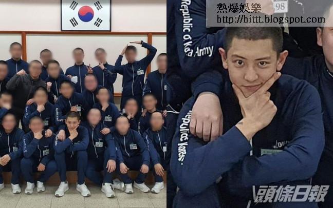 韓國男團EXO成員燦烈在上月29日以陸軍身份入伍,繼成員上星期公開經典「摸頭照」後,燦烈在軍中的近照亦曝光。燦烈與同梯隊的其他軍人合照,他坐在第一排中間,又擺出「剔」字手勢托腮,甫士相當搶眼。轉眼服役兩星期的燦烈似乎已適應行軍生活,他精神飽滿、表情趣緻,令粉絲放心不少。