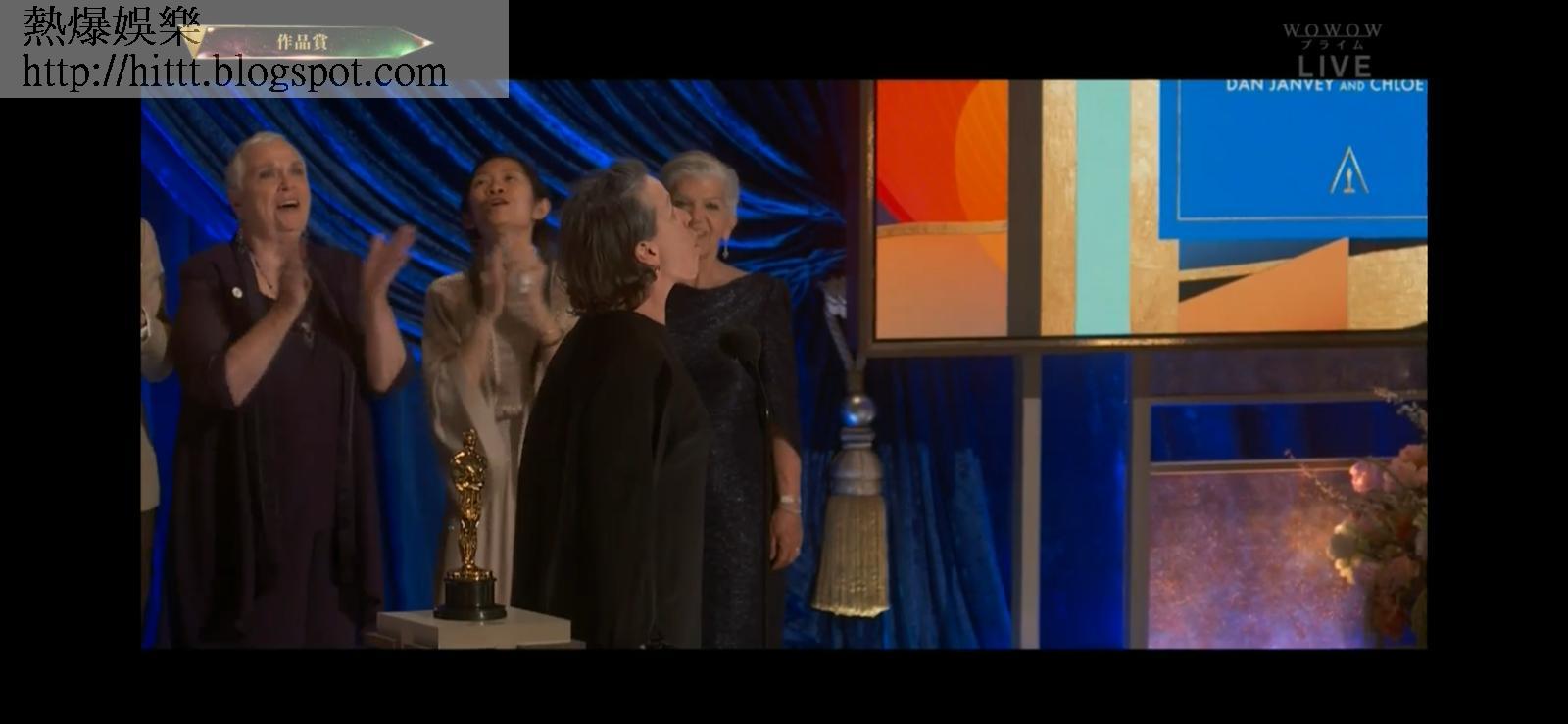 其實趙婷剛才已獲最佳導演獎,擊敗其對手《曼克》的大衛芬奇、《農情家園》的鄭李爍、《超犀女王》的Emerald Fennell及《Another Round》的Thomas Vinterberg,成為首位華人女導演獲此殊榮,亦是繼李安後,第二位華人導演獲此獎。