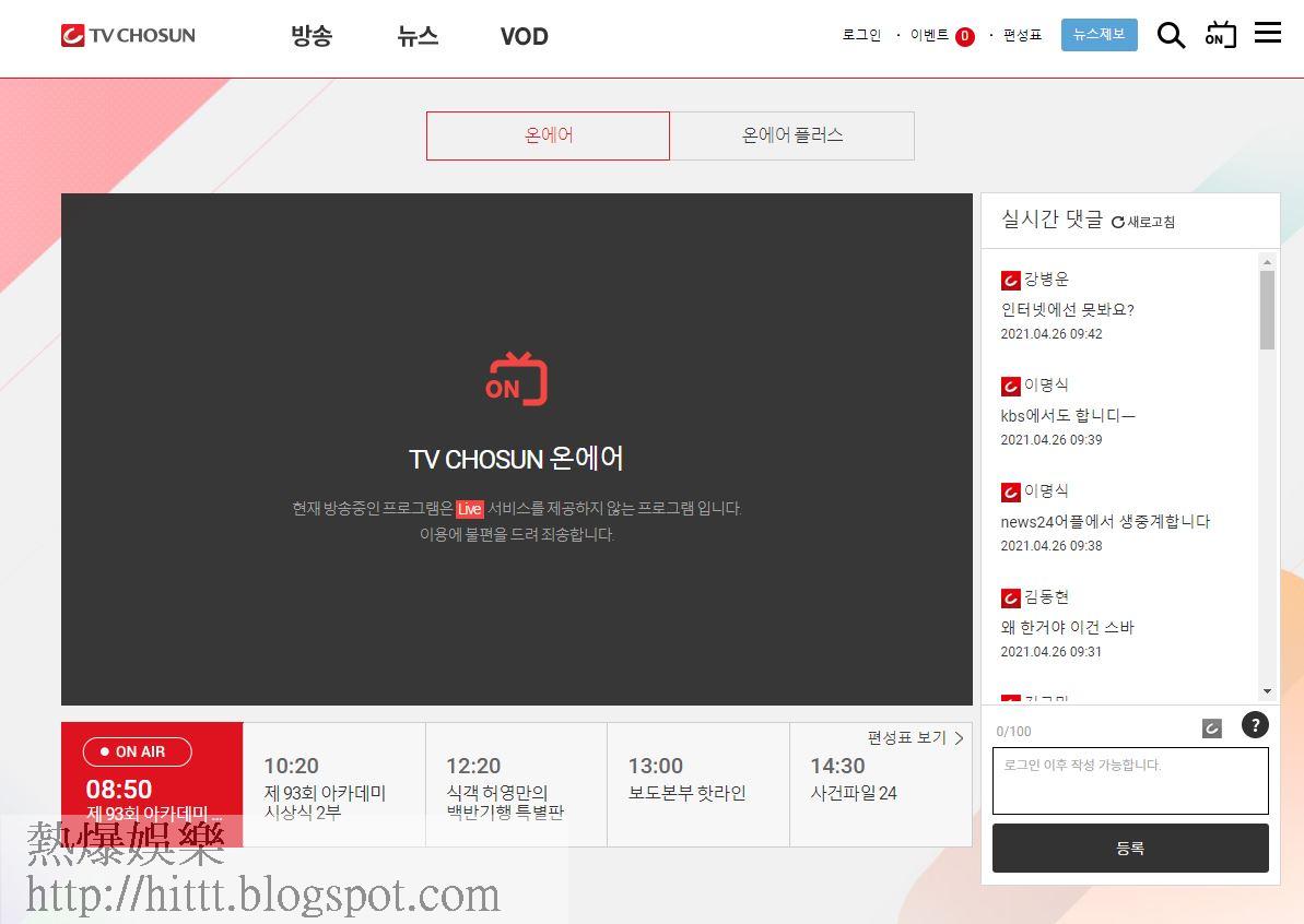 另外,韓國TV朝鮮電視台成為韓國唯一轉播奧斯卡頒獎禮的頻道,但電視台卻沒有提供網上直播,引起網民不滿,對此,TV朝鮮僅表示:「合約內容是這樣的。」雖然TV朝鮮沒有網上直播,但就吸引觀眾死守電視機前,而尹汝貞獲獎一刻,收視率急升至7.88%。
