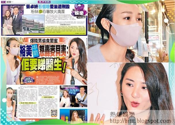 歌手麥貝夷早前在網上指控拍拖3年多的「男友」性伴多得驚人,矛頭直指曾傳緋聞的翟威廉。情傷未愈的她昨日再爆料,指前度曾偷食其朋友,直斥對方是賤男。其好友裕美隨即捲入事件成為疑似第3者,她即時發火,更自爆與麥貝夷早已擘面,不留情面放狠話:「佢真係要睇醫生!」