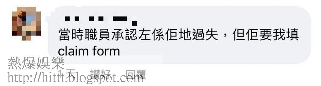 事主在前文提及職員態度良好,當時職員亦有承認過失,不過話鋒一轉,指:「但酒店要我填claim form。」(圖片來源:facebook群組「香港 Staycation 酒店交流谷」)