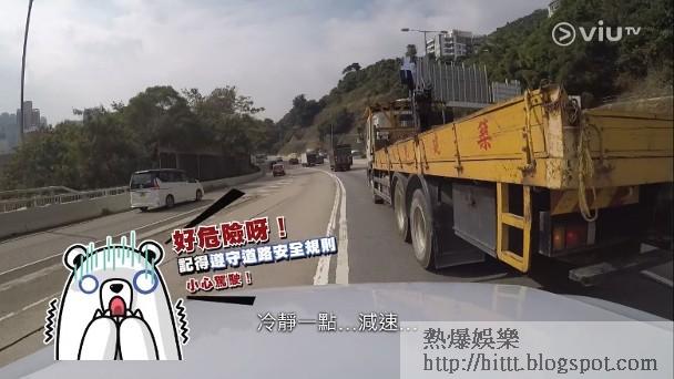 嘉倩直言自己方向感極差,喺商場去完廁所出返嚟會行回頭路!之後佢再上龍翔道,香港其中一條最繁忙公路,但轉彎時太快,入彎嚇到佢係咁嘩嘩叫,車路限速70公里,但陳嘉倩只係行緊40公里:「咁我行得太慢係咪會…」在旁富有多年駕駛經驗嘅Alex就直言有危險,因為有好多巴士貨車,之後仲Set多個目標畀陳嘉倩,希望佢可以爬到頭,點知話口未完,就畀架貨車爬頭,嚇到陳嘉倩大叫,差啲車頭撞人貨車車尾,仲硬Cut雙白線兼急煞停喺路上!Alex就解釋對方可能睇唔到陳嘉倩架車,進入咗貨車嘅盲點位,但對方係有打燈,不過可能判斷錯,以為陳嘉倩揸得慢令佢夠時間過,嚇到陳嘉倩不斷傻笑,仲話想喊,而Alex都話真心驚,亦提醒陳嘉倩要望住條路!