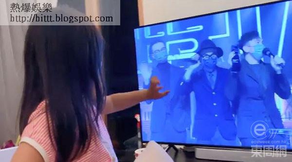 楊洛婷囡囡睇直播好興奮,係咁同電視入面嘅爸爸揮手。