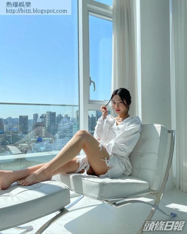 韓國女團Red Velvet(RV)成員Joy昨日更新社交網,白色裝束與室外一片藍天好夾,坐在貴妃椅上的Joy更大晒一對靚靚長腿,索到爆。雖然一早知道身高167cm(約5呎6吋)嘅Joy比例好好,不過每次見到都會再驚訝一次。因為上下身服裝同色,坐喺度好有「下衣失蹤」Feel,細心再望吓,其實件衫係大V領,連鎖骨都露埋真係好吸引呀。
