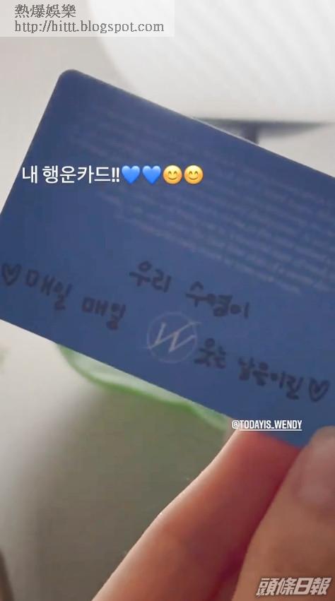 Wendy仲寫「希望我們秀英每天都充滿笑容」。