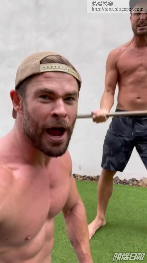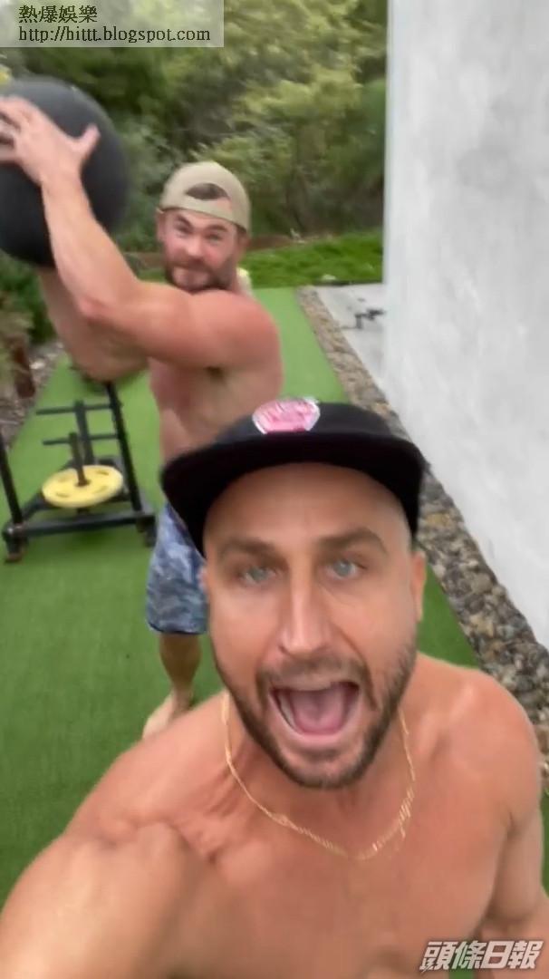 「雷神」Chris Hemsworth出名熱愛健身,所以練得一身完美肌肉。今日Chris在IG分享與澳洲名DJ好友Fisher進行健身訓練的影片,片中兩人都打大赤肋,戴着cap帽「操肌」。
