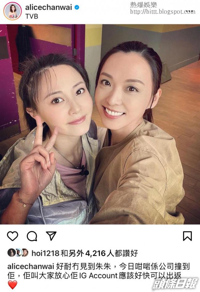 早前朱朱透過好姊妹陳煒的社交網「報平安」。