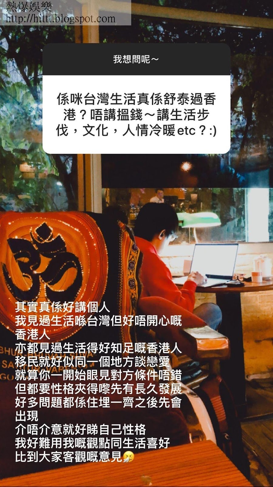 蔣雅文(Mandy)雖然已移居台灣多年,不過早前她回香港過新年,回台灣後亦必須在家自行隔離14日。(Instagram:@yawen_j)