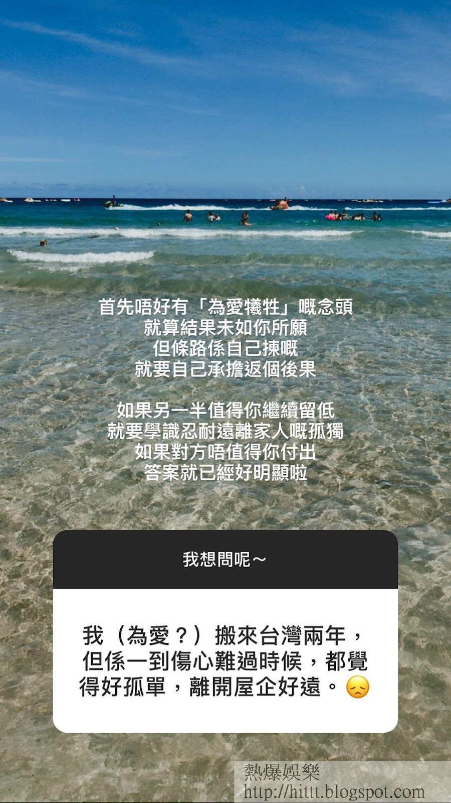 蔣雅文指早在結婚前,已同老公約定8年期限一到就離開台北。(IG:@yawen_j)