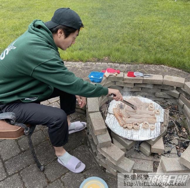 權相佑與太太孫兌迎最近成日周圍去玩,日前兩人才打完高爾夫球,今日繼續聯同家族成員BBQ!孫兌迎昨日(19日)在IG上載老公專心燒嘢食的照片並留言:「周末的感覺,今日是權主婦 ^^ 為我親自燒烤,所以食物更加美味呢。」從照片及影片可見,權相佑燒緊五花肉同磨菇,表情仲要好專心,似乎俾老婆偷拍都唔知,而他着上墨綠色Hoodie及拖鞋,形象好休閒,加上負責燒嘢食咁貼心,完全係好男人典範呀!