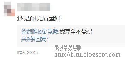 另外2張相則是他珍藏的3對李寧運動鞋及1對拖鞋,新淨程度似係剛買,梁競徽可能擔心網民認不出運動鞋是出自李寧,還特意影到鞋盒,以表忠誠,有網民在其帖文下留言「還是耐克(NIKE)質量好」,梁競徽即回應:「我完全不覺得。」