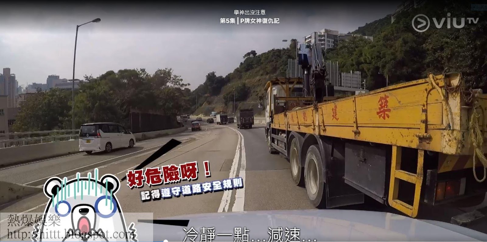 邊度跌低,邊度起返身,陳嘉倩經過補鐘惡補駕駛技術後,在昨晚新一集再次挑戰「死亡」公路和超高難度的泊車位。可是,即使有豐富駕駛經驗的Alex傍實指導,依然發生不少驚險場面,其中在上龍翔道時,由於陳嘉倩一直維持龜速慢駛,並駛入旁邊的貨櫃車的「盲點」,貨櫃車司機切線爬頭時,陳嘉倩差點撞上對方車尾,在緊急關頭下,Alex大嗌「煞車」,此時,嚇到魂不附體的陳嘉倩,即cut雙白線煞停。停車後,陳嘉倩顯得一臉惶恐,更坦言「我真係好想喊!」不過之後又為自己平反說:「其實我冇做錯呀,係嗰個司機唔啱呀!」還說:「睇見靚女都唔讓!」
