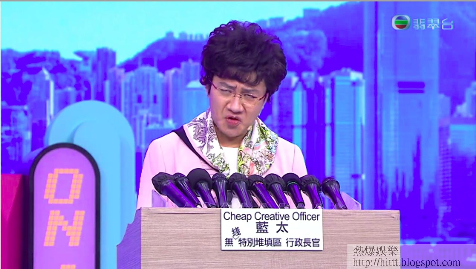 TVB周日(11日)播出的《開心大綜藝》中,其中一個環節,是藝人王祖藍扮演「無綫特別堆填區行政長官藍太」,名牌更印有「Cheap Creative Officer」,短曲髮造型及打扮均與特首林鄭月娥十分相似。節目中除王祖藍扮藍太外,阮兆祥則扮演張竹笙醫生,而陸永扮演圓教授。