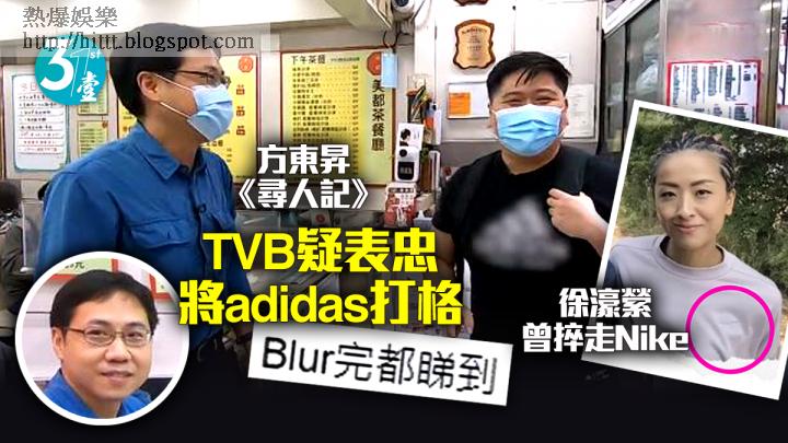 方東昇主持的TVB節目《尋人記》,尋找八、九十年代新聞故事的主角。昨晚播出那一集,尋回廿多年前受訪的肥胖男孩,當年6歲的他,現已變成噸位十足的男士。由於他身上T恤的adidas logo又大又搶眼,TVB竟全程打格,可是欲蓋彌彰,仍然睇得出是adidas logo。無遮林雪細logo