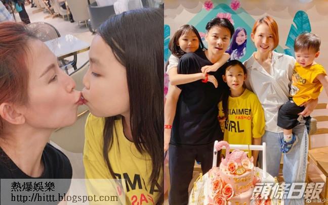 蔡少芬(Ada)與老公張晉的大女兒張楚兒(湯圓)10歲生日,Ada昨晚在微博貼上一家人與好大齊為湯圓慶生照,母女還來個嘴對嘴啜啜。Ada留言:「10歲了!雙位數字,眨下眼就10年。。寶貝湯圓你是個美麗、溫柔、體貼、善良、活潑、主動、好學的乖女兒,能有你是我們的感動和感恩!愛你只有增無減!生日快樂,我們愛你!」