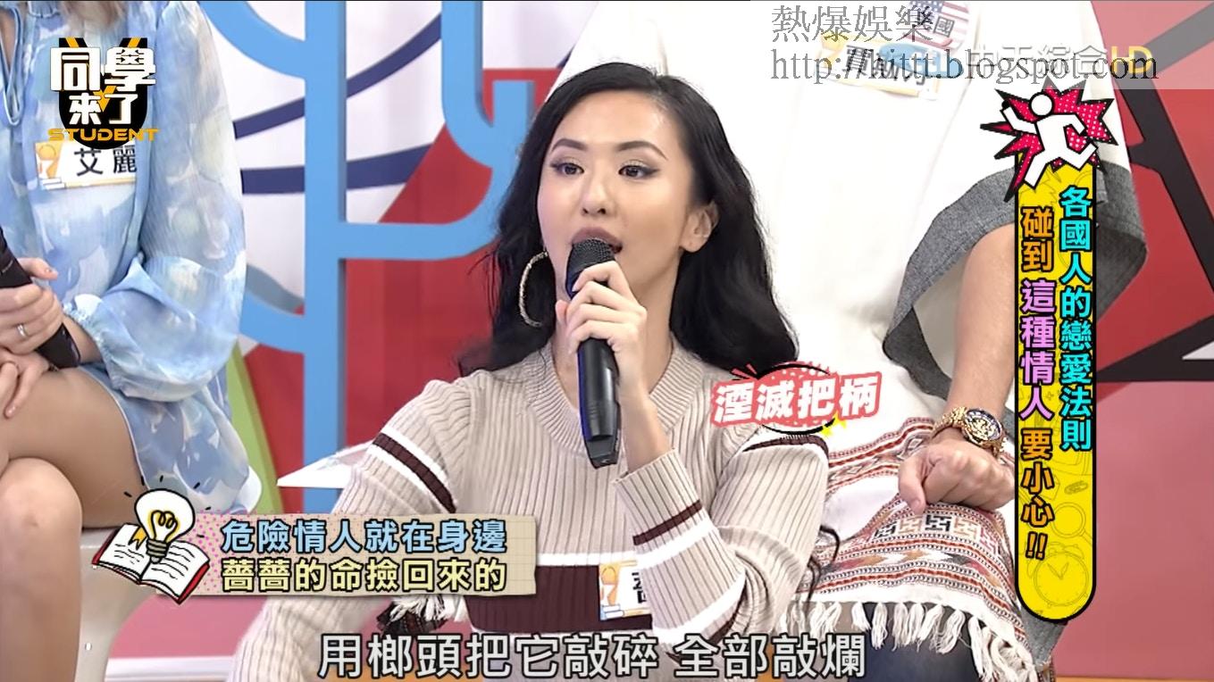 台灣女藝人薔薔在節目裡提到,「20歲的時候遇見一個恐怖情人,剛開始都很美好」(《同學來了》截圖)