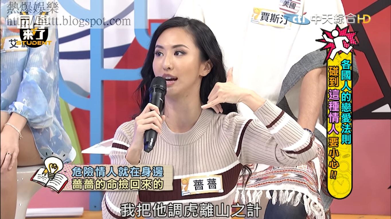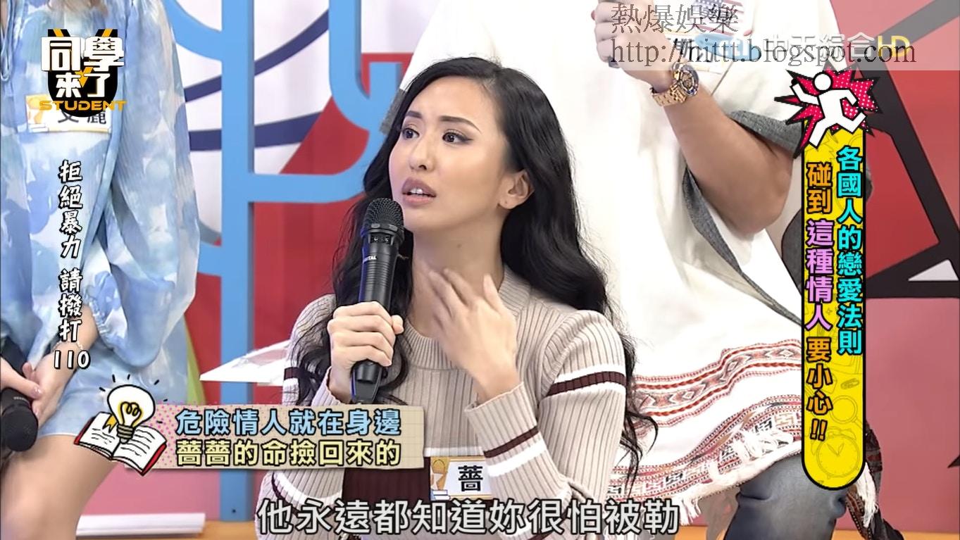 台灣女藝人薔薔在節目裡提到,「20歲的時候遇見一個恐怖情人,剛開始都很美好」(《同學來了》截圖)