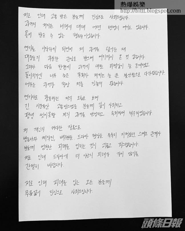 27歲的韓國男星金志洙今年初拍攝韓劇《月升之江》期間,被踢爆學生時期欺凌及性騷擾同學,更公開女同學的性愛片段!醜聞流出後,志洙承認犯錯並以親筆信道歉,但最後被飛出劇組。當時只剩兩集未拍,但仍有十集未播,最後男星羅人友緊急頂替重拍男主角所有戲份,製作公司Victory Contents蒙受巨大損失。