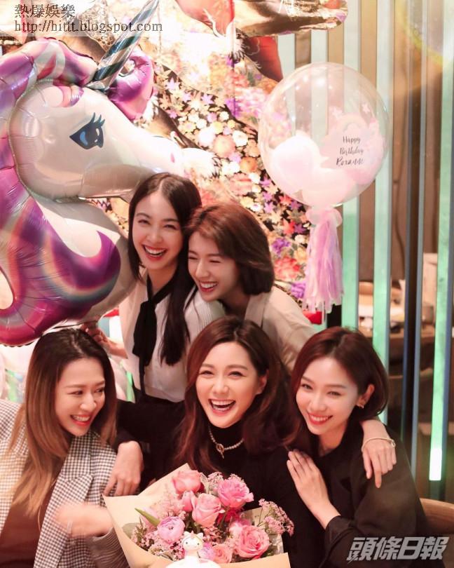 昨日是湯洛雯(靚湯)的34歲生日,她率先上載一張與生日蛋糕的合照,昨晚再貼出大合照,原來有一班好姊妹朱千雪、蔡思貝、岑杏賢(Jennifer)及楊秀惠為靚湯慶生!靚湯指最開心就是和姊妹們一齊笑,眾人亦好有心思,由氣球到蛋糕都以代表靚湯的獨角獸為主題。不過蛋糕上的獨角獸翻糖公仔好大個鼻,令壽星女搞笑表示「Is that a pig or unicorn?(它是豬還是獨角獸?)」。