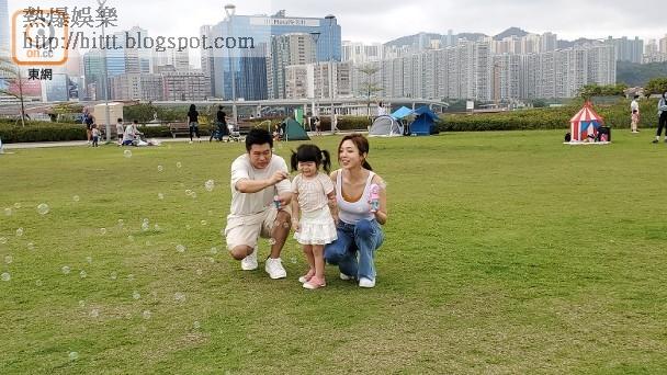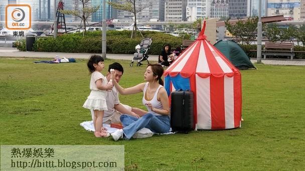 早前「阿姨」與老公Andy帶着3歲囡囡「穎穎」享家庭樂,到啟德郵輪碼頭的大草地玩樂,自備帳幕和坐墊,又買定薄餅和壽司來野餐,可算經濟又好玩,不過卻大頭蝦帶漏隔水墊,由於前一日落雨令草地微濕,他們甫坐下即一褲濕透,幸無阻興致,一家三口在草地大玩麻鷹捉雞仔,囡囡笑得開懷,亦很黐媽咪,經常將「I miss you」掛在嘴邊。