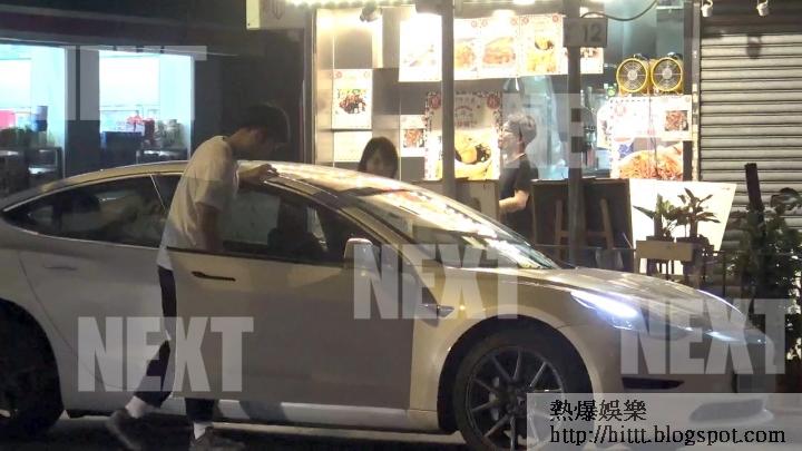 收工時,Bella 又坐住男友價值約40萬Tesla戰車返歸。