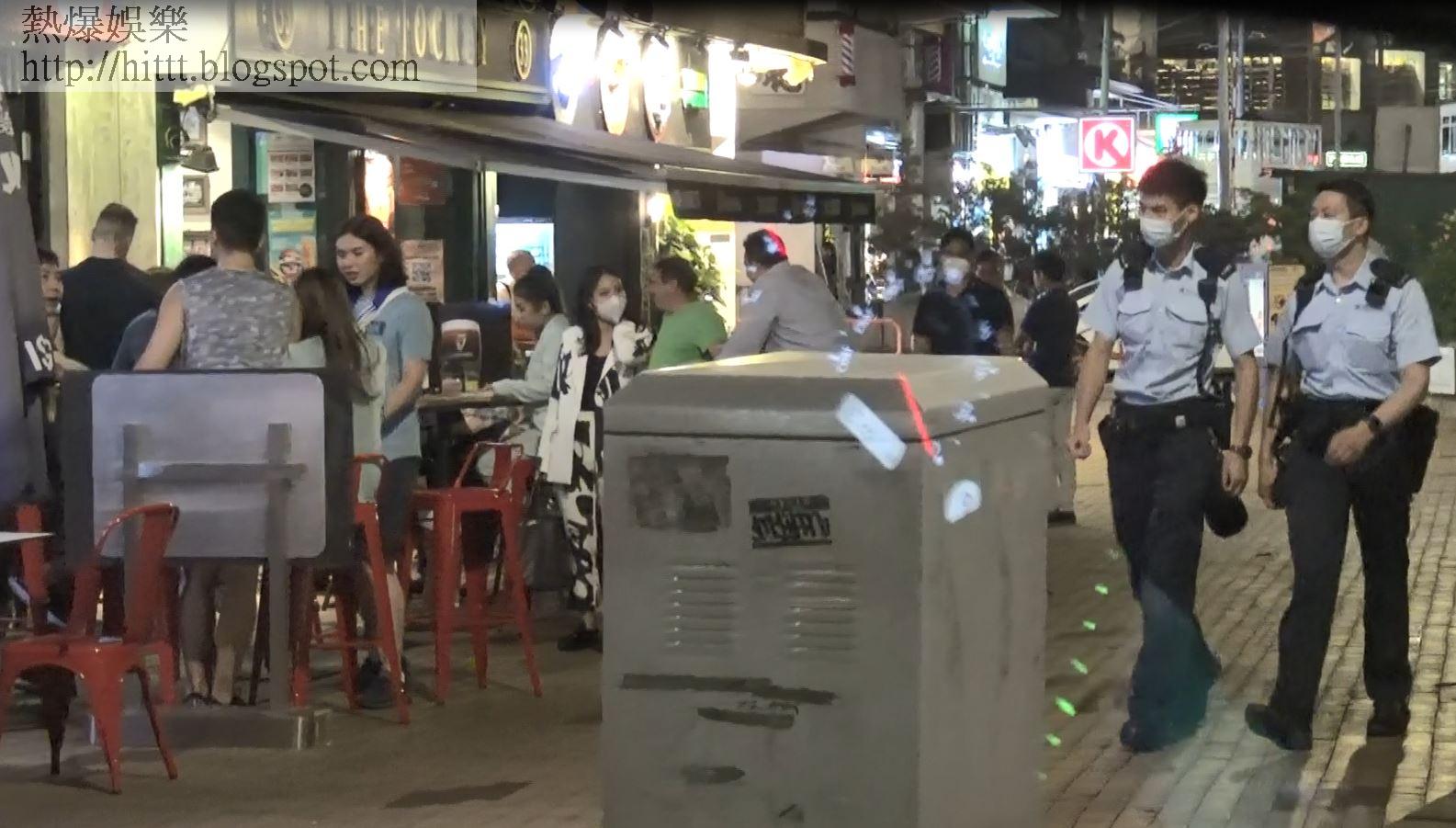 霍詠盈似乎剛收工有點攰,不時扭腰按頸鬆一鬆,由於當時限聚令未更新,仍是每枱只能坐4人,他們一行5人得4個位不夠坐,胡智略與女友站在桌旁與友人傾偈,其間霍詠盈見到有警察經過,她即醒目地自行走開,而胡智略就掛住與友人忘形吹水,待警察行過後,霍詠盈才返回桌旁,其後兩友人先行離去,胡智略與女友才坐下。其間胡智略繼續吹唔停,手舞足蹈,看來是一個很健談的人,直至晚上10時堂食時間過才埋單離去。