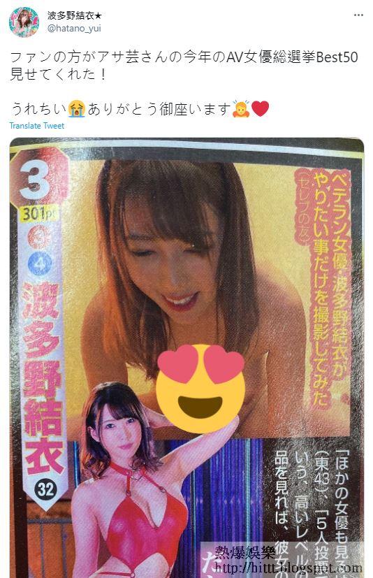 剛公佈的「現役AV女優總選舉2021」,由高橋聖子打敗三上悠亞、波多野結衣登上冠軍寶座。日本麻甩佬雜誌《週刊Asahi藝能》每年均舉辦「現役AV女優總 ...