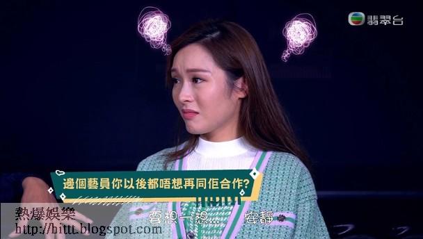 第一條問題是入行以來遇過最委屈的事,其他人就開名亂作一通,不知就裏的Ali見他們講得如此激烈就自爆:「幾年前有一次頒獎禮,大會要求我同一個前輩影合照,但當我走過去,對方就走開咗。」她還應要求公開了對方的名字,不過江美儀不收貨,直指不覺這件事有甚麼委屈之處,樂小姐亦走過來跟Ali說:「放膽呀!講得坦白啲。」Ali委屈說:「我連名都開埋喇喎!」