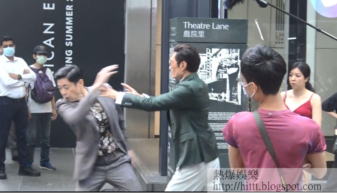 同場的何啟南正拍攝一場在街頭與低胸艷女的調情,劇情講述他與艷女交頭接耳之際,被穿上西裝打扮西正的黃德斌發現,隨即將他推倒在地拳打腳踢。何啟南的太太也有到場探班,原來這是何太第一次在老公拍戲時去探班,問到是否特意來監場?何太表示:「唔係,第一次想嚟睇吓,呢啲(調情戲)都冇所謂。」而何啟南也指很簡單的一幕戲,事前無向太太備案。