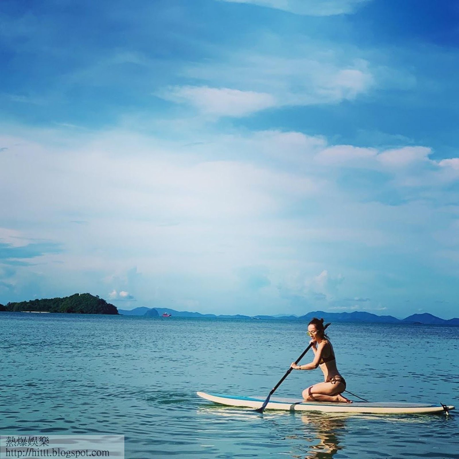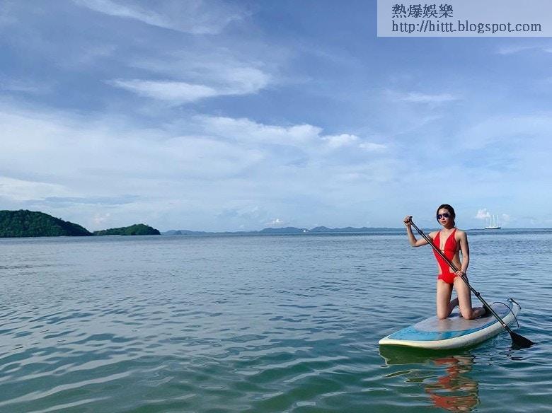 在泰國布吉嘗試玩直立板。(IG@selenaleelalee)