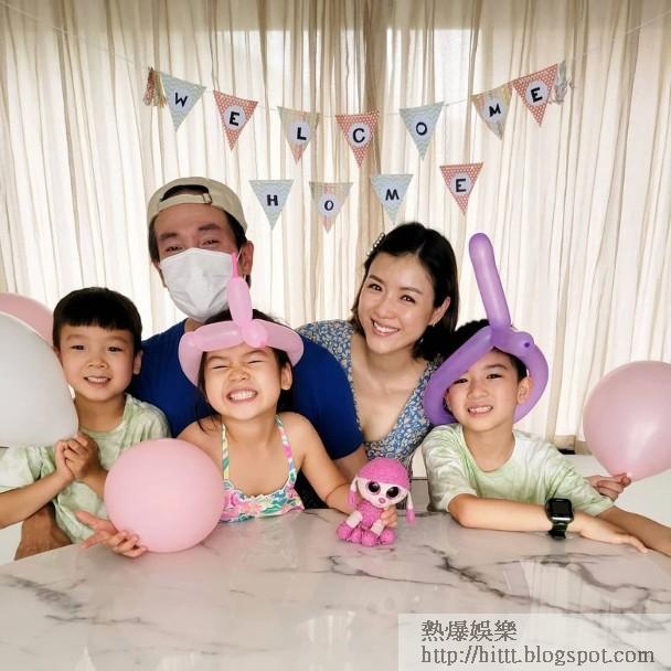 相隔兩個多月,今日他終於回家與家人團聚,老婆陳茵媺於社交網大晒一家五口合照,見陳豪一手攬住老婆同囡囡,兩個兒子再前後夾攻,將他重重「包圍」攬到實!陳茵媺又特意在家中布置一番,貼上氣球及標語,熱烈歡迎老公回歸,非常溫馨,而向來防疫意識甚高的陳豪,即使返到屋企亦罩不離口,相當小心!陳茵媺激動留言:「He is finally back!(他終於回來了!)」並指現在一家人終於可以團圓。