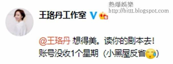 正當一班網民熱討嘅時候,其工作室火速發文闢謠:「想得美,讀你的劇本去!帳號沒收1個星期(小黑屋反省))。」呢段發文直接否認咗王珞丹退出娛樂圈一事,仲明示佢將會有新劇推出。