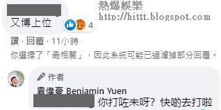 有質疑他打針為上大陸發展鋪路,網民都認同指「肯定係」,袁留言反問對方:「咁肯定」,沒正面回應這問題,亦有網民留言:「大陸唔認復必泰喎。點解唔打科興,有出入境通行證喎!」袁覆:「其實先不要看那裏認證不認證,選擇合適自己的才是首要,況且現在是政府推行給市民的福利,是好應該享用的,好像其他國家例子,例如印度情況就未必有我們這麼幸福了,所以要好好把握機會。」雖然被不少網民抨擊,但亦有網民留言支持:「豪仔,加油!健康平安。」、「多喝水」、「注意體溫」。